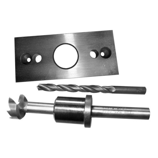 This drill fixture works for the GraCoil® S and LP models, the only difference is the hole depth. Once the stock has been cut off and the mounting screw holes have been drilled, then the drill plate can be mounted. Now you are ready to drill the 1 1/8" diameter hole to required depth and then drill the 3/8" hole in two places to their required depth. Remove the fixture, fit the plate and you are done. Unit comes complete with steel plate, 1 1/8" multi-spur bit, 3/8" drill bit and drill bushing.